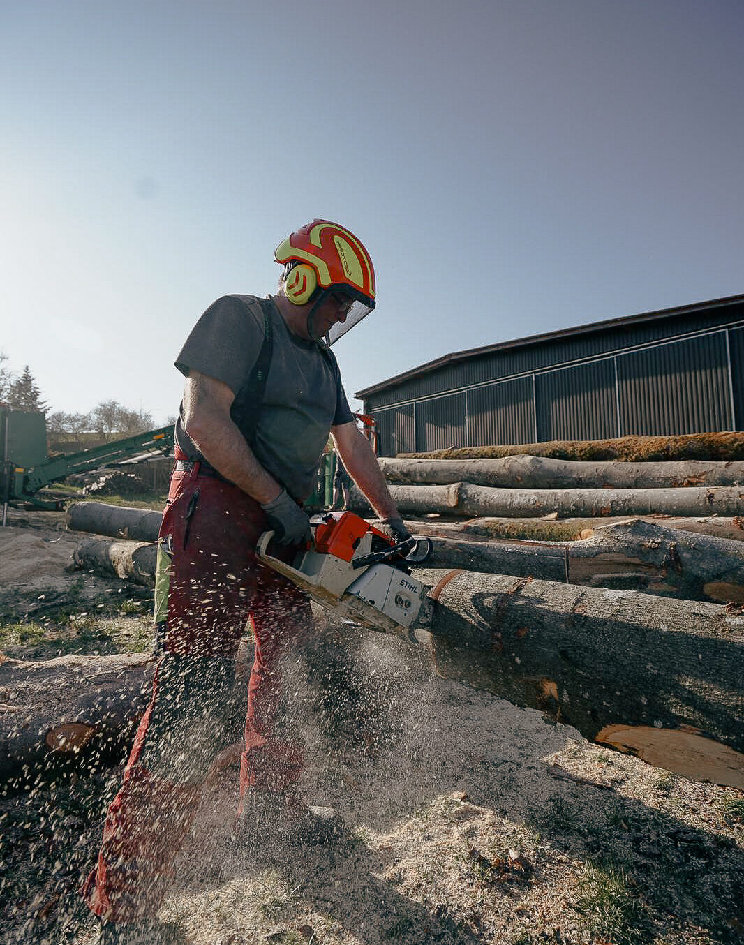 Wir übernimmt forstwirtschaftliche Aufgaben wie das Fällen von Bäumen und weitere Tätigkeiten im Waldmanagement.